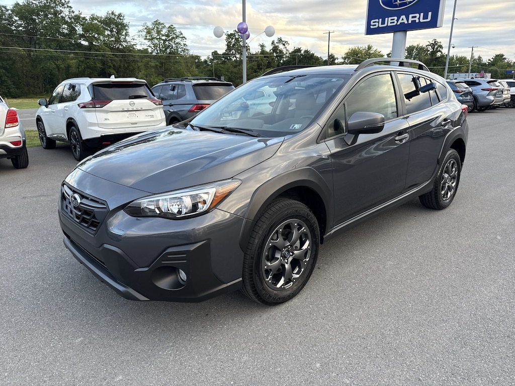 Only 14,138 Miles! Scores 34 Highway MPG and 27 City MPG! Dealer Certified Pre-Owned. This Subaru Crosstrek delivers a Regular Unleaded H-4 2.5 L/152 engine powering this Variable transmission. MOONROOF & BSD W/RCTA & 8.0" MULTIMEDIA PLUS AUDIO -inc: Blind Spot Detection w/Rear Cross-Traffic Alert, system off switch, exterior power mirrors w/BSD/RCTA detection indicator, rear radar detection sensors, blind-spot detection, lane change assist and rear cross-traffic alert audible vehicle detection warning, Power Moonroof, tilt up and internal retracting w/auto-open/close, Laminated, UV and dark tint moonroof glass, Radio: Subaru STARLINK 8.0" Multimedia Plus System, AM/FM stereo, HD Radio, single disc CD player w/MP3/WMA/CRR/RW file capability, multi-touch gesture high resolution display screen, voice activated controls, Bluetooth audio streaming and hands-free phone connectivity, Bluetooth hands-free SMS text messaging connectivity, Near Field Communication (NFC), iPod control capability, SiriusXM All Access Radio (4 months free trial/subscription required after), SiriusXM Travel Link (4 months free trial/subscription required after), smartphone integration: AHA, Android Auto,, MAGNETITE GRAY METALLIC, GRAY W/YELLOW STITCHING, STARTEX UPHOLSTERY.